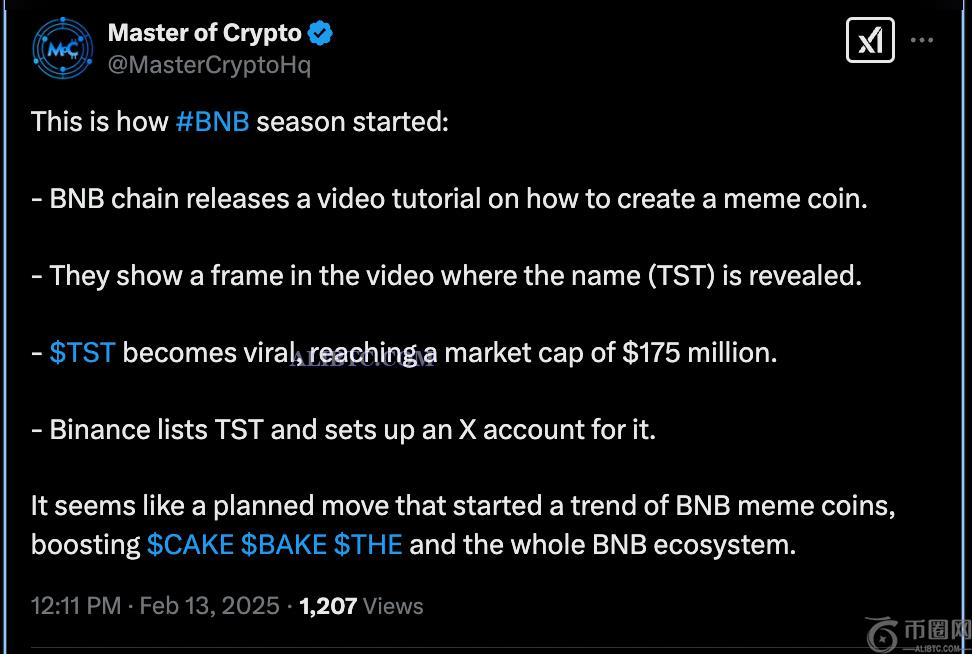 - 币安在 2 月 11 日发布的2025 年路线图中**关注 memecoin 的发布。