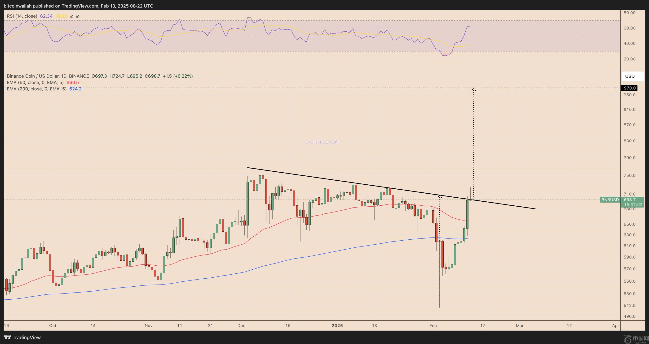 - 最近的突破证实 BNB 价格已进入**的“运行”阶段,预示着看涨势头将持续。