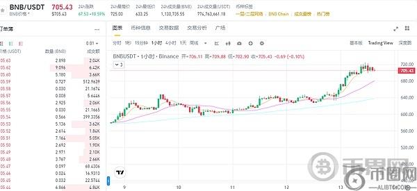 BeInCrypto 数据显示,截至撰写本文时,BNB 的交易价格为 705 美元,在过去 24 小时内上涨了近 11%。