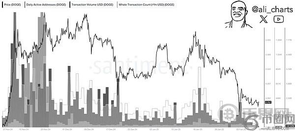 尽管价格波动,但 DOGE 的活动图表反映出其网络的稳定参与度。