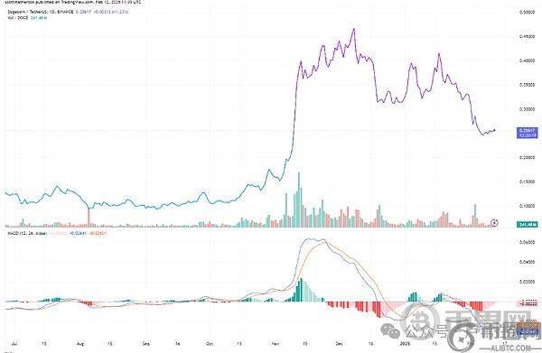 在撰写本文时,DOGE 的交易价格为 0.2536 美元,在过去 24 小时内下跌了 5.3%。