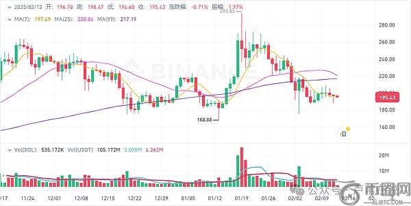 SOL价格盘中上涨近1%,目前为195.43美元,盘中**价和**价分别为189.61美元和198.45美元。