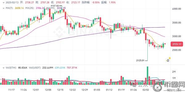 ETH价格在过去24小时内上涨6%,目前交易价格为2,723美元。该**的24小时**价和**价分别为2,551.17美元和2,794.87美元。
