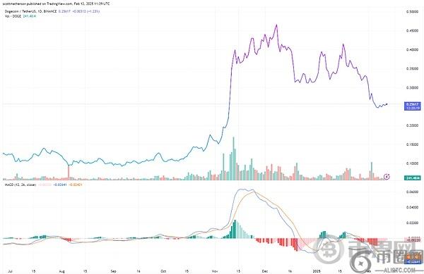 值得注意的是,该区域是在该模因币于 2 月 1 日至 2 月 3 日下跌之后出现的,当时该币价自 2024 年 11 月以来**跌破 0.22 美元。随后狗狗币出现短暂回升,**稳定下来并开始在 0.23 美元至 0.26 美元之间盘整。