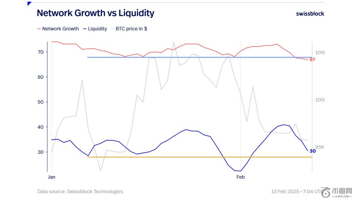 根据分析师的说法,削弱了市场流动性和网络增长度量标准(衡量用户和交易的数量)正在为旗舰加密资产闪烁看跌信号。