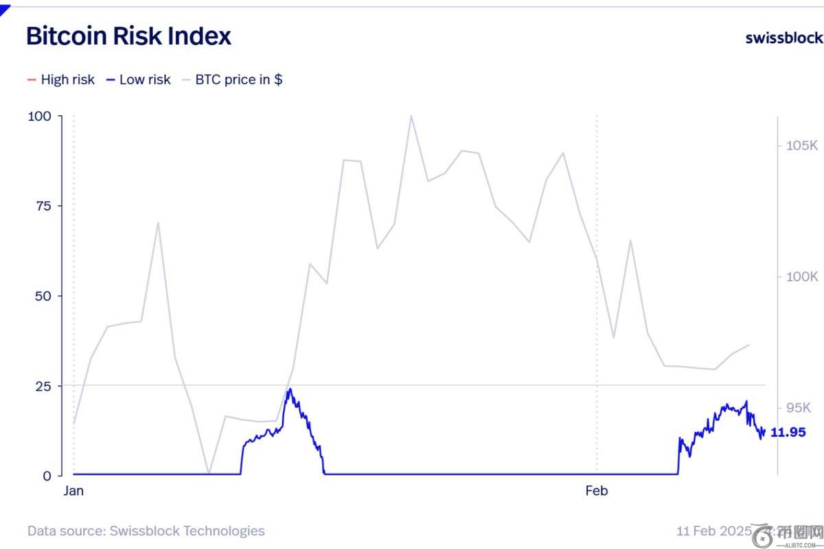 比特币风险信号基于“一组专有指标,包括比特币价格数据,链上数据和其他交易指标的选择”,衡量了BTC是否有大量价格**的风险。