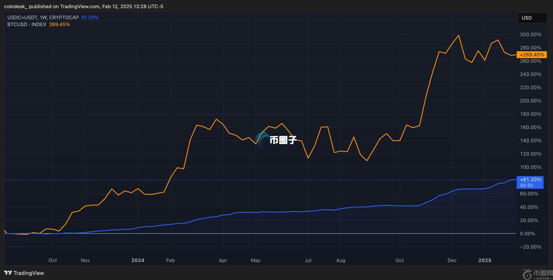 文章标题:稳定币需求回温!USDC迎来强劲增长 本周市值突破560亿美元大关