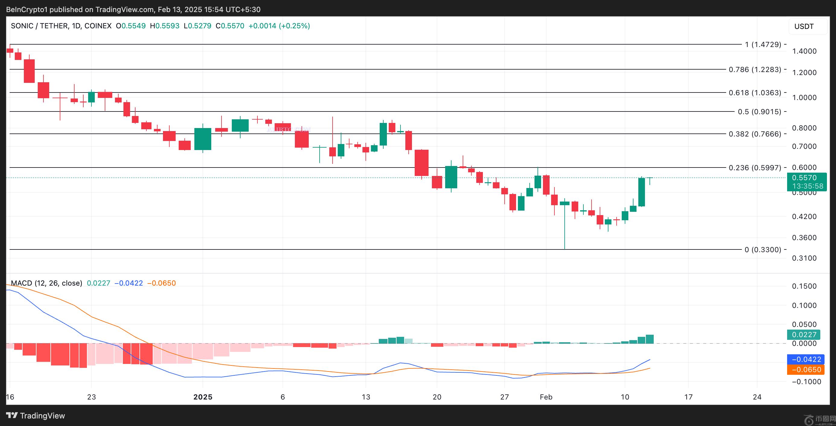 在这种情况下,Sonic 的价值可能会突破 0.59 美元,达到 0.76 美元。相反,市场趋势的负面转变可能会导致 S 的价格跌至 0.33 美元。