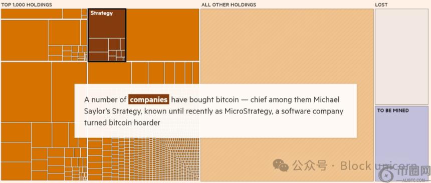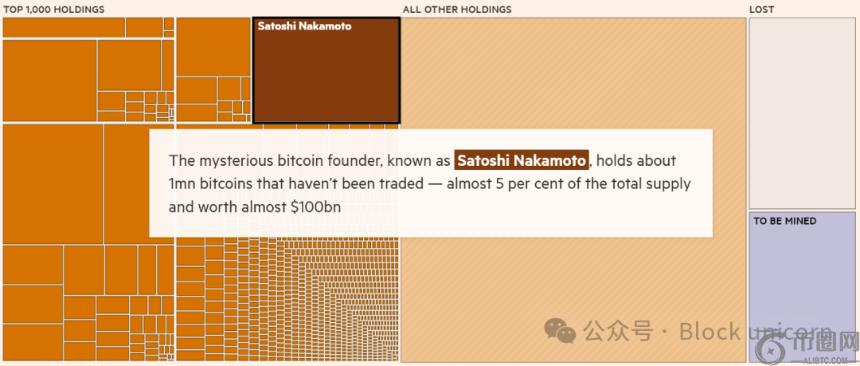 在**的 1000 名持有者之外,还有约 800 万枚比特币的所有者信息不详。