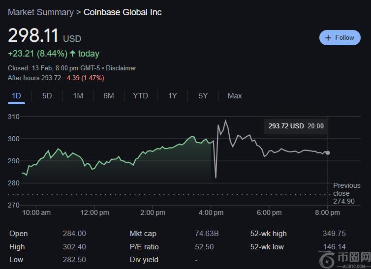 在发布其收益后,Coinbase的股价上涨高达10%。