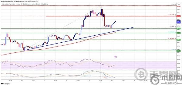 如果 BNB 未能突破 700 美元的阻力位,则可能会再次下跌。下行的初始支撑位在 665 美元附近。下一个主要支撑位在 650 美元附近。