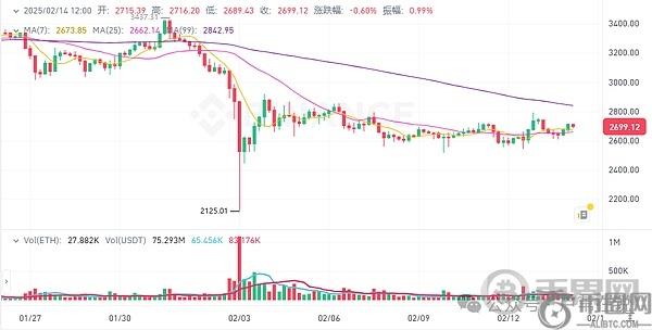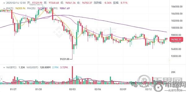 2月14日,加密货币价格的走势引发了全球投资者情绪的波动,这种不确定性主要源于关键美国经济数据的公布及其后的市场动态。尽管市场经历了动荡,比特币(BTC)的价格依然坚守在97,000美元左右,而以太坊(ETH)的交易价格则逼近2,700美元。