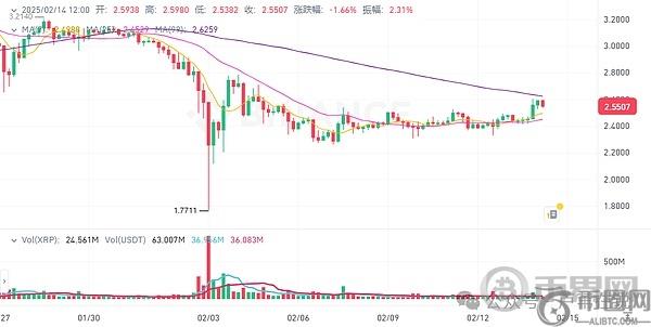 XRP 价格在过去 24 小时内上涨超过 4%,目前交易价格为 2.58 美元。该**的盘中低点和高点分别为 2.42 美元和 2.60 美元。
