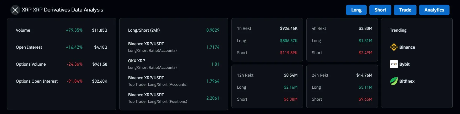 按照数据XRP期货公开利息在过去的24小时内飙升了16%以上,达到41.8亿美元大关,XRP期货开放利息飙升了16%以上。它的衍生工具量飙升了近80%,以敲响118.5亿美元的损失。一个ETF归档更新使交易者重新回到了投机游戏中,预计XRP价格现在可以达到多高。