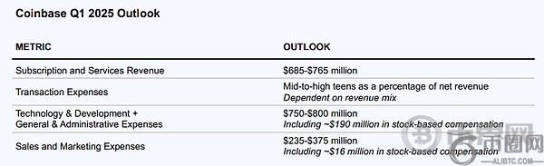 本季度,其订阅和服务业务(包括稳定币、质押、托管和 Coinbase One 产品)的收入预计在 6.85 亿美元至 7.65 亿美元之间。