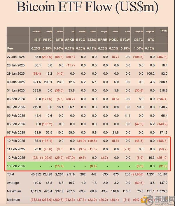 需要注意的是,并非所有机构都具备高水平的投资能力。一些“散户型机构”近期已经开始抛售比特币ETF,连续四天净流出总额超过5亿美元(见下图)。