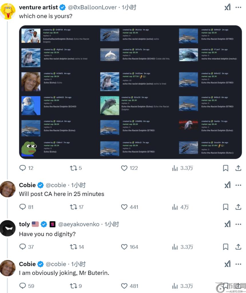 Cobie 表示会在 25 分钟后发布合约地址,Toly 则调侃道:“你要脸吗?”