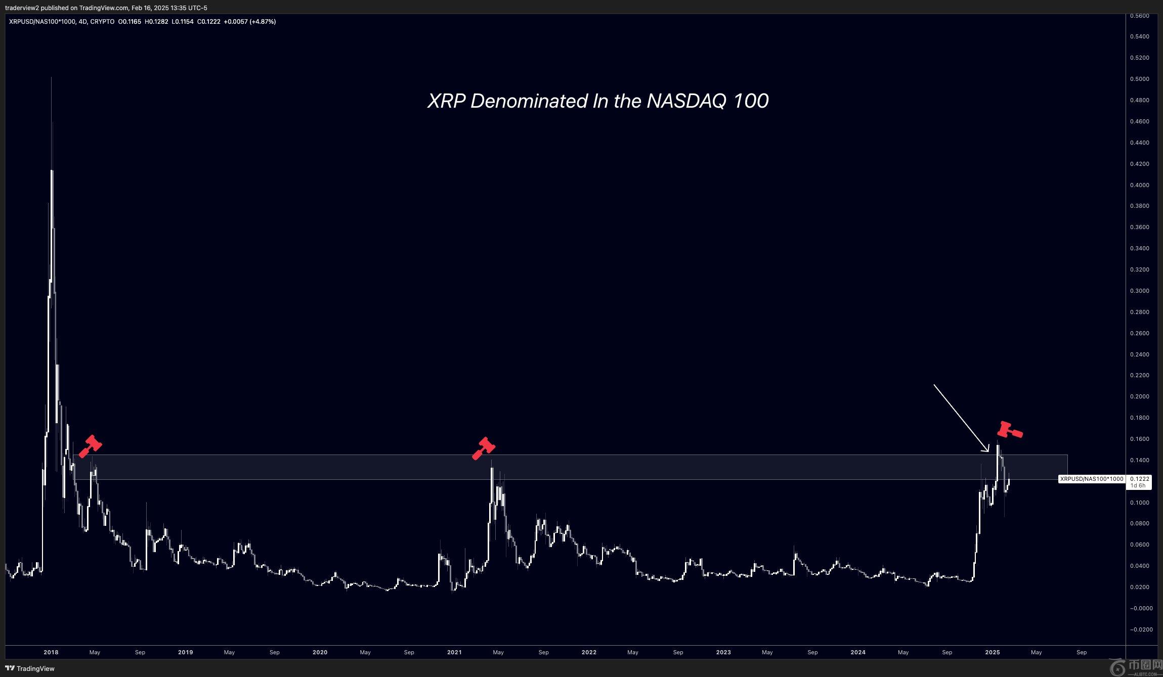 XRP与纳斯达克100的斗争