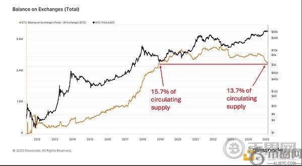 *与2018年底相比,目前交易所的比特币数量减少了,但今天的市场规模要大得多——大多数机构现在都能够购买比特币。