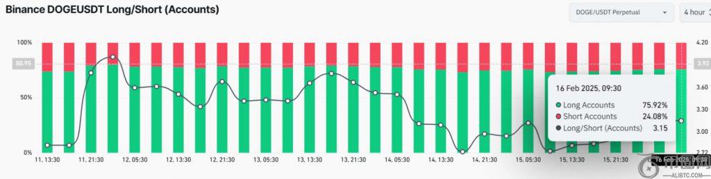 Doge/USDT Binance的Doge/USDT交易对在黄金区域内设计了**性动量,弯曲了3.15的巨大长/短比。这个强大的比率显示了长期以来的头寸**3比1,而众多**交易者通过战略地位**限度地提高了其Altcoin投资。