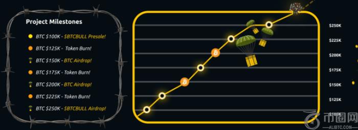 每当$ btc攀升25,000美元(从$ 10万美元起)时,该项目将发布比特币Airdrops到$ btcbull持有者,他们已经购买了令牌。Best Wallet.