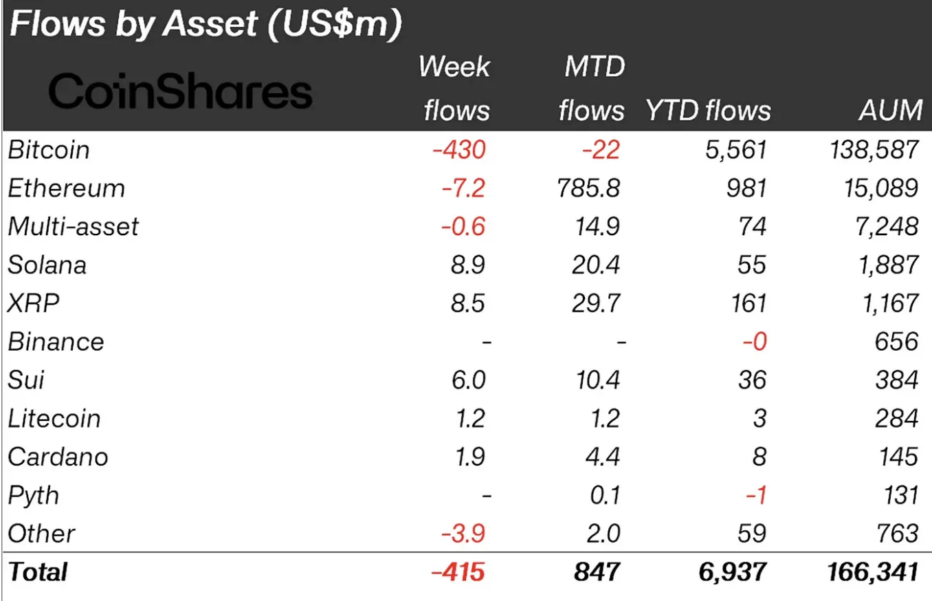 4.15亿美元出口的加密基金,结束了19周的流入运行 - Coinshares