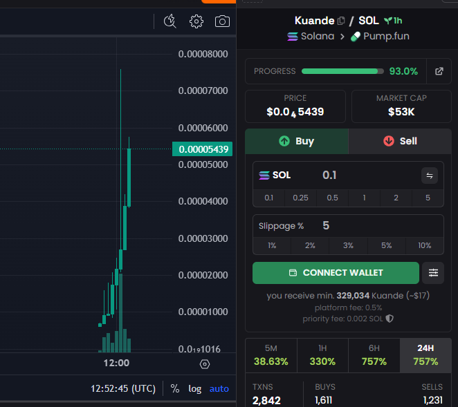 当涉及到Kuande**时,它也被Shills和Social Media Implainers占用,通过X和Telegram传播其CA。**的快速先令和立即提及的CA类似于协调的模因竞选活动。如果是这样的话,这种尝试是相当冒险的,因为Kuande的市值仅为4.4万美元,而ETH的一小部分被烧毁以普及资产。令牌仍然是高风险通配符,尽管它设法完成了91%Pump.fun在两个小时内结合曲线。
