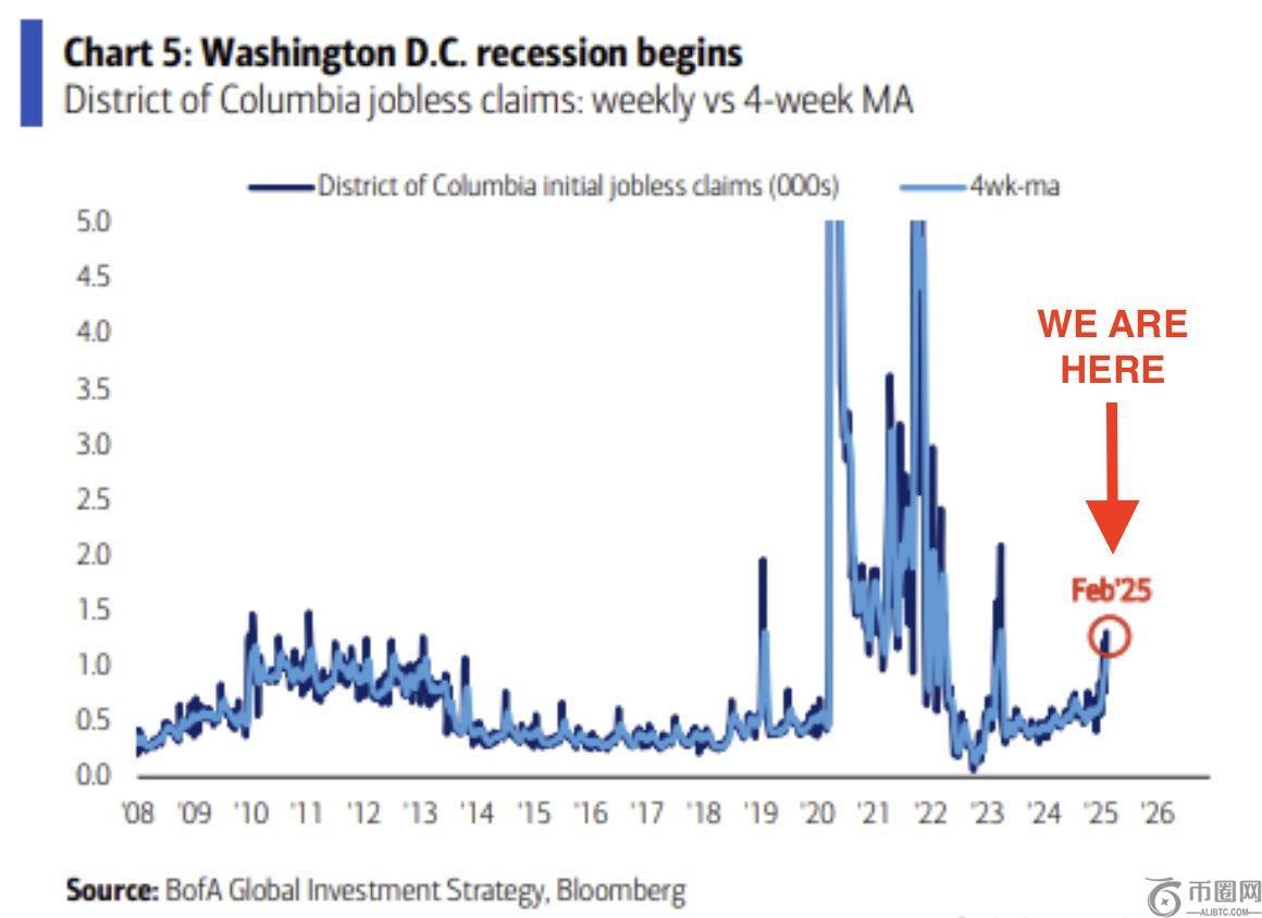 华盛顿特区目前的经济状态类似于2008年的金融危机。失业申请和工作损失最糟糕。在特朗普政府,特别是通过埃隆·马斯克领导的政府效率部(DOGE)的联邦劳动力方面,这一激增幅度更大。