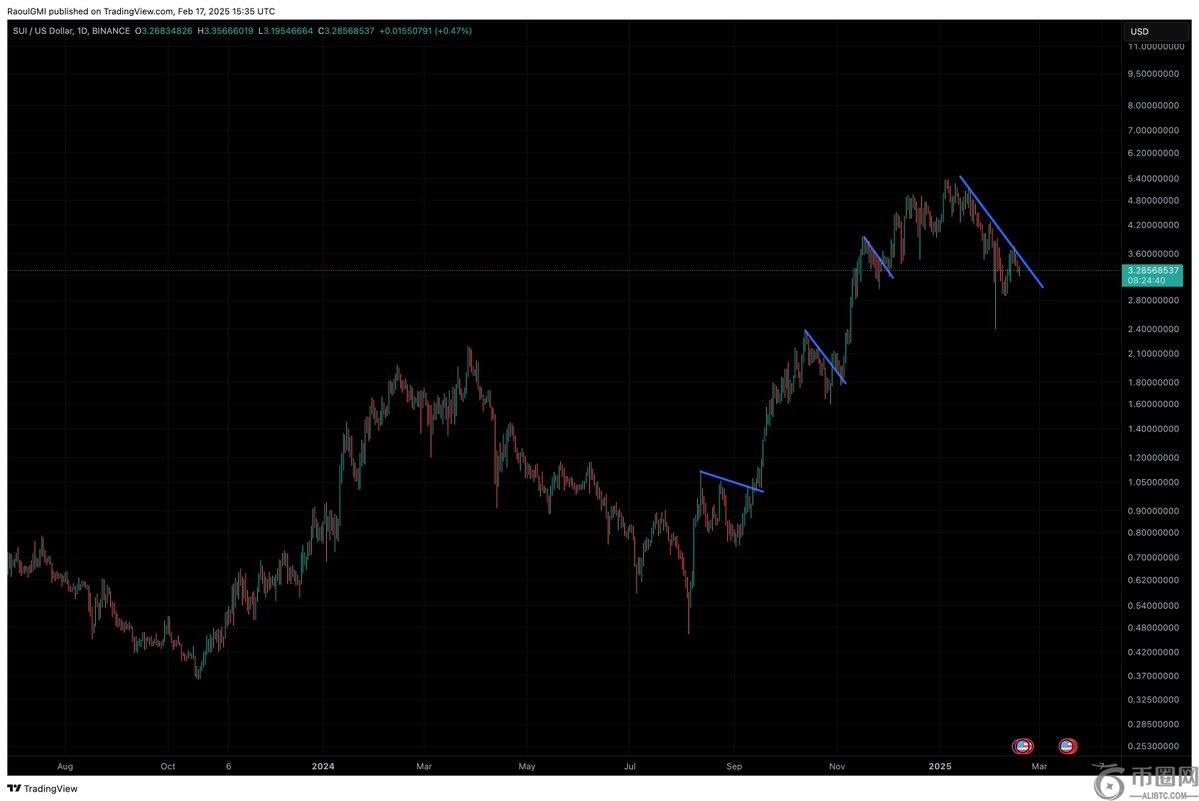 **,他建议SUI准备重复一种历史性的模式,以翻转下降趋势线的阻力并打印新的历史**点。