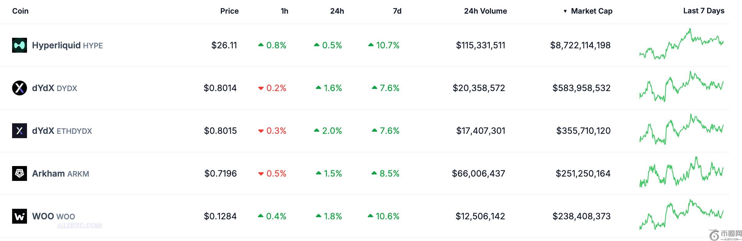 永续币似乎有望反弹,前五大永续币在过去一周均有所上涨。HYPE 领涨,七天内涨幅超过 10%。在 HYPE 挣扎了数周之后,这一势头表明人们对该行业的兴趣日益浓厚。