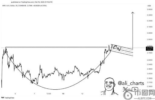 目前,XRP是成型独特的价格图表模式。**的加密分析师阿里·马丁内斯(Ali Martinez)对这种新形成的技术模式进行了简要分析,以价格向新的高点投射出来。