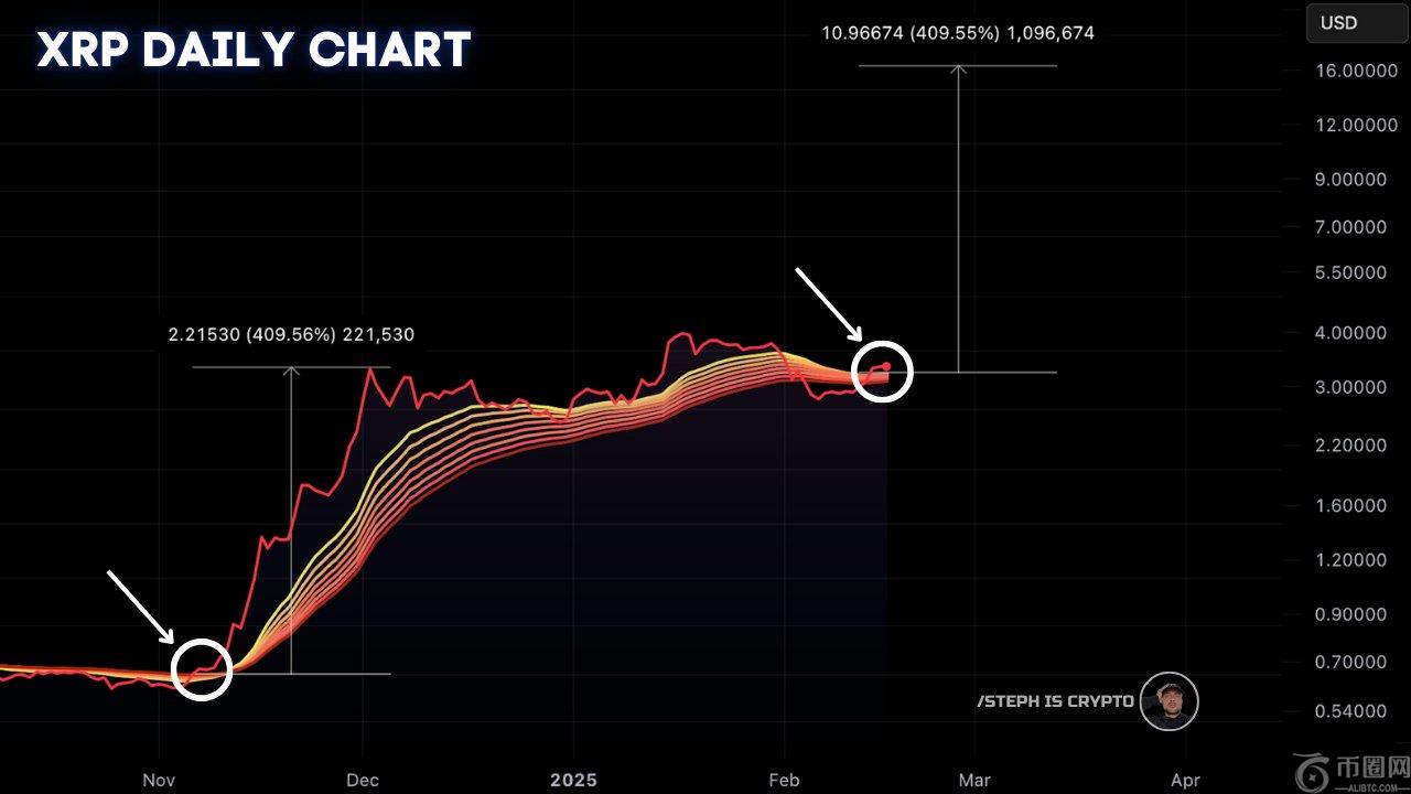 在**突破之后,斯蒂芬认为有类似集会的可能性很高发生。据他说,这是一个强烈的看涨信号,表明市场动力目前正在转移XRP。一个相似的400%的运行将价格提高到13.25美元。