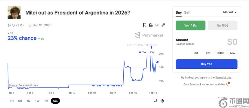 若 Polymarket 预测成真,米莱或成为**因加密项目垮台的**元首。