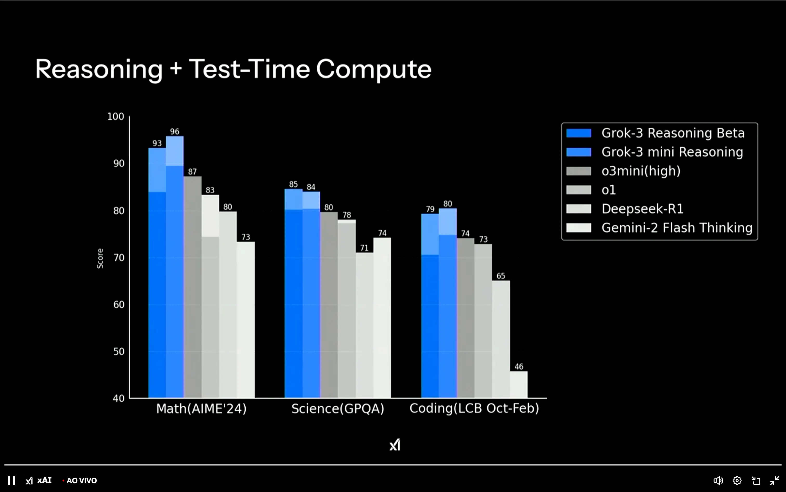 Xai团队在现场演示期间展示了Grok 3的基准测试。图片:xai