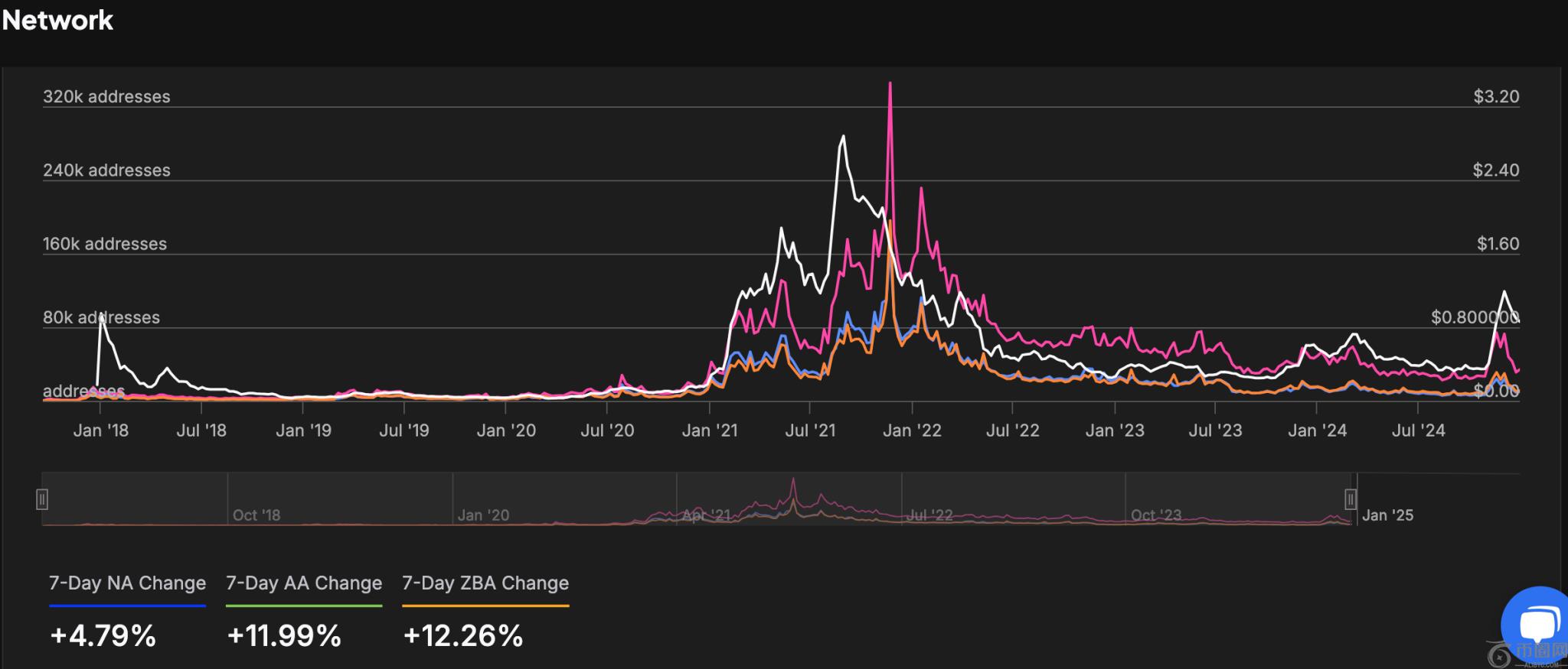 Cardano的网络活动也反映了参与度的增加。一个报告从intotheblock开始,每天的活动地址都在上升。