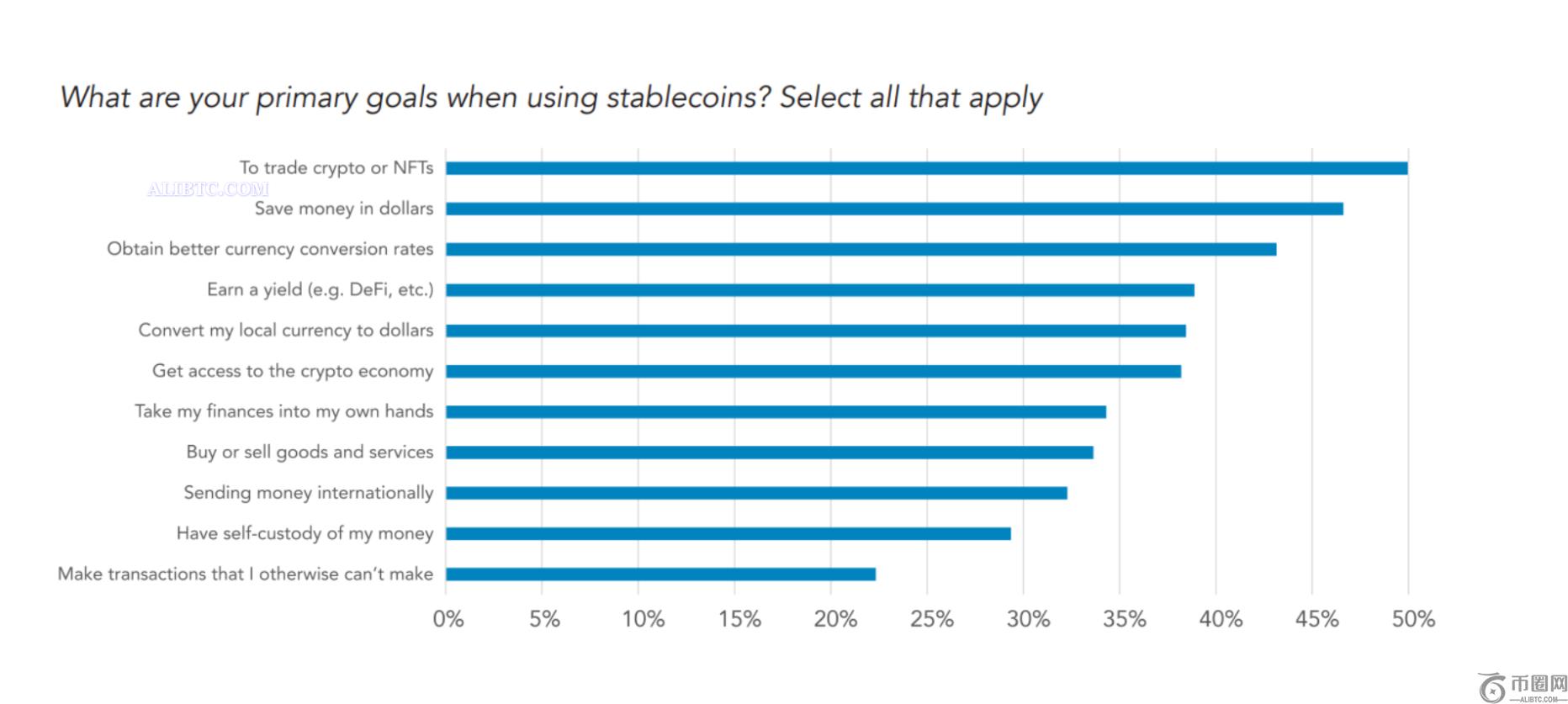 调查显示,与其他接受调查的**相比,尼日利亚用户对稳定币的兴趣最浓厚。尼日利亚人使用稳定币交易的**很高,投资组合中稳定币的份额**,将其用于最广泛的非加密用途,并且自述对稳定币的了解程度很高。节省美元是他们的首要任务。