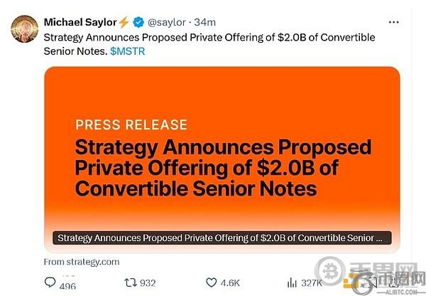 文章标题:Strategy拟发行20亿美元可转换债券以购买更多比特币