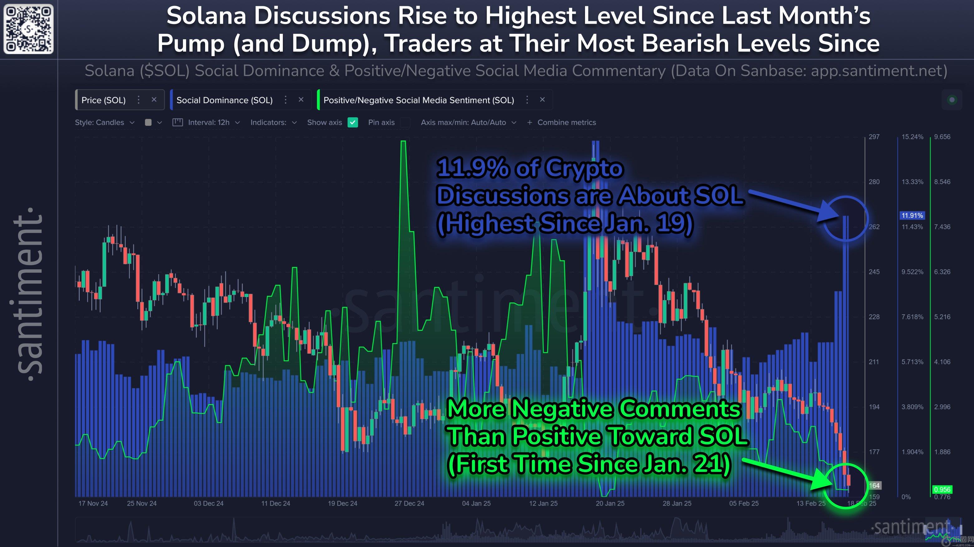 此外,11.9%的加密讨论是关于Solana的, 这自一月以来**。和日益增加的讨论和负面情绪上升,Solana的 失败似乎迫在眉睫.