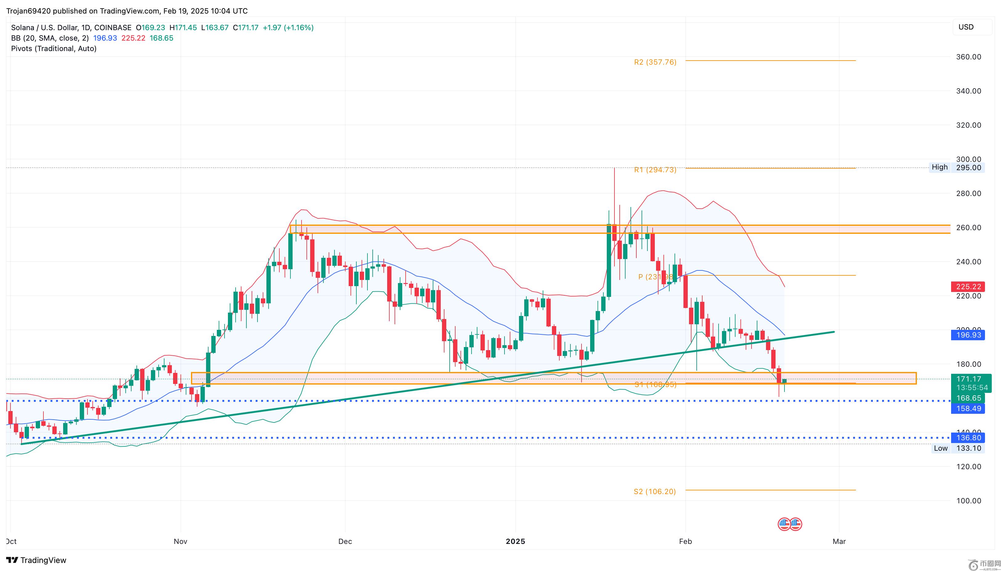 现在,Solana紧贴S1 Pivot支持水平为168美元。基于价格动作分析和枢轴点,168美元以下的收盘价可能会导致大量投资至$ 106.