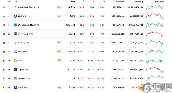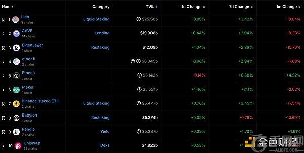 DeFi项目锁定资产前十排名及锁仓量 数据