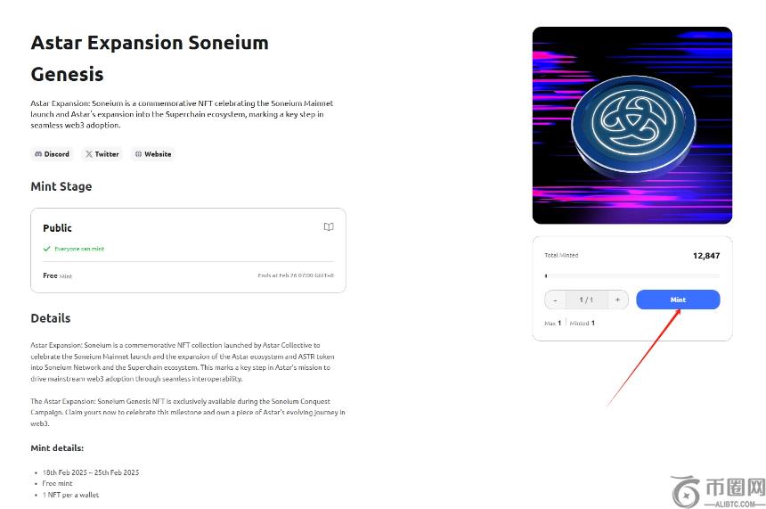 STEP 1. 铸造 Astar NFT(链接:https://launch.sonova.one/launchpad/Astar_Expansion_Soneium_Genesis)。