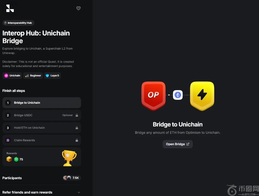 STEP 2. 完成两个 Layer 3 任务 Unichain is now live、Interop Hub: Unichain Bridge,链接分别为:https://app.layer3.xyz/quests/unichain-is-now-live、https://app.layer3.xyz/quests/interop-**-unichain-bridge,任务为基本的跨链、Swap 等交互操作。