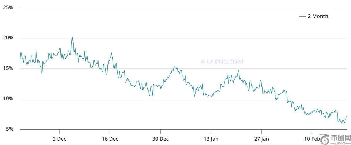 2 月 3 日,比特币期货溢价跌破 10% 看涨关口,此后一直保持中性。这限制了保证金市场的乐观情绪,因为自比特币价格无法维持在 100,000 美元以上以来,对期货杠杆多头头寸的需求已经下降。
