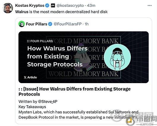 Mysten Labs联合创始人Kostas Kryptos不久前表示:“Walrus是最现代化的去**化硬盘。”