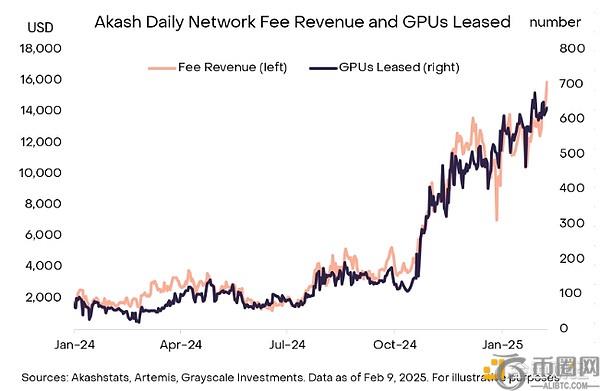 图 4:2024 年 11 月 Akash 费用收入和 GPU 租赁的增长加速