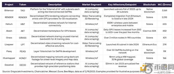 图表 5:按类别、区块链和市值划分的 DePIN 示例