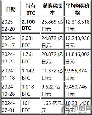 日本微策略Metaplanet比特币持仓已增至2100BTC!占全球供应量的0.01%