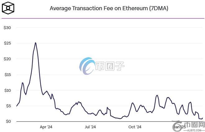 币圈网(Alibtc.com):近期,以太坊(Ethereum)的交易费用出现了大幅下降,创下自2020年7月以来的新低。根据**数据,2023年2月15日,以太坊网络的7天移动平均交易费用降至0.77美元,较一周前的2.57美元下降了70%。虽然通常交易费用的下降会**用户活跃,但这一大幅度的减少,尤其是长期呈现下行趋势,需求可能并未得到有效提振,这可能是当前市场状况的更真实写照。