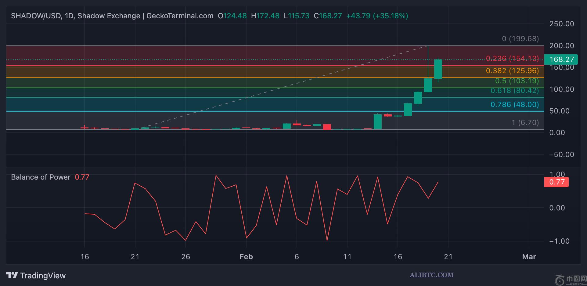 SHADOW 是当今另一种热门山寨币,因为其价值在过去 24 小时内飙升了 50% 以上。目前,其交易价格为 168.27 美元,市场参与者对其需求持续旺盛。
