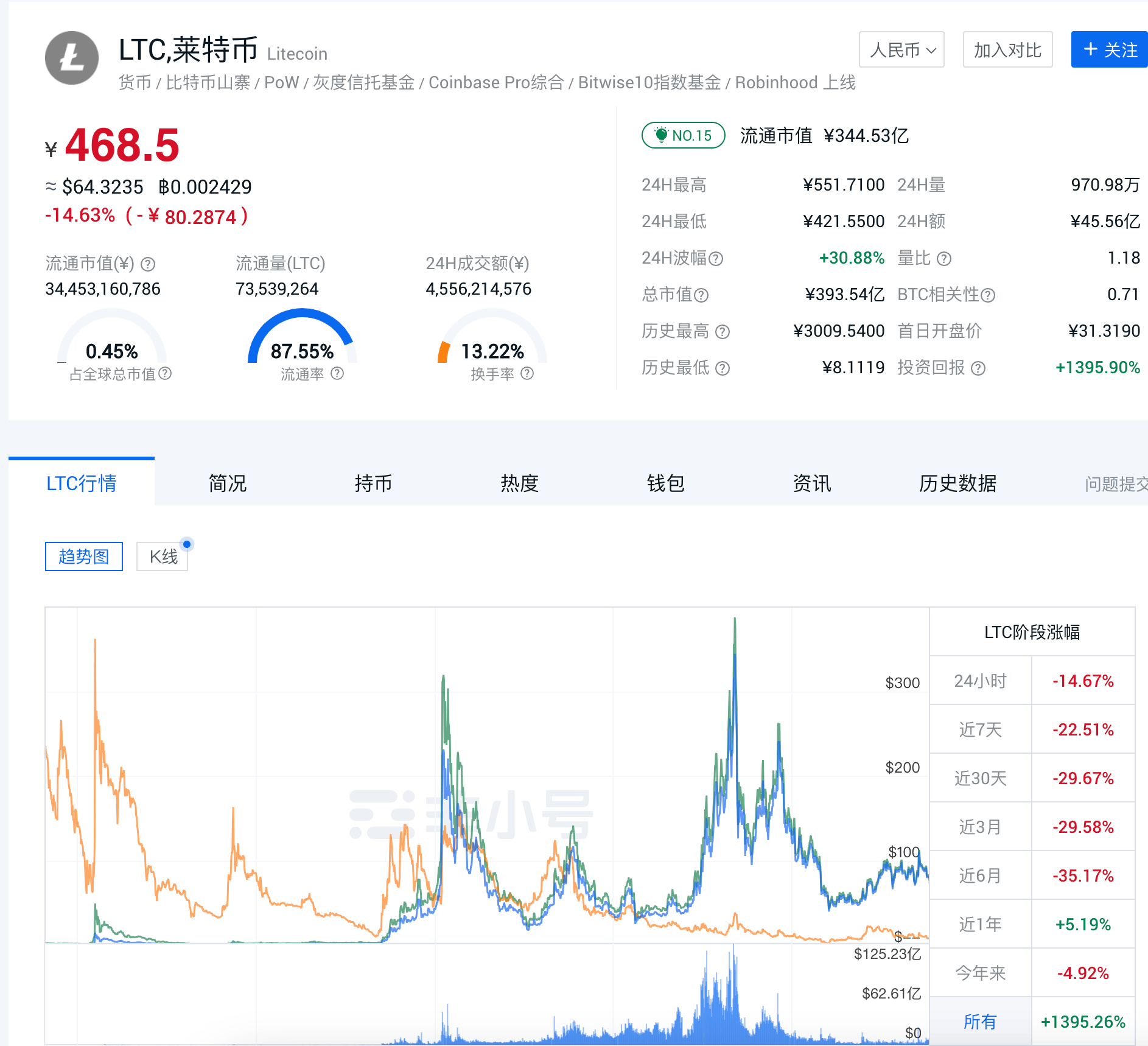 4. 莱特币的历史发展:莱特币在2011年10月7日通过Git**上面的开源客户端进行发布。近年来,莱特币被多次报道为比特币的替代品,并在全球范围内获得了广泛的关注和认可,目前市值排名**5,市值50亿美金